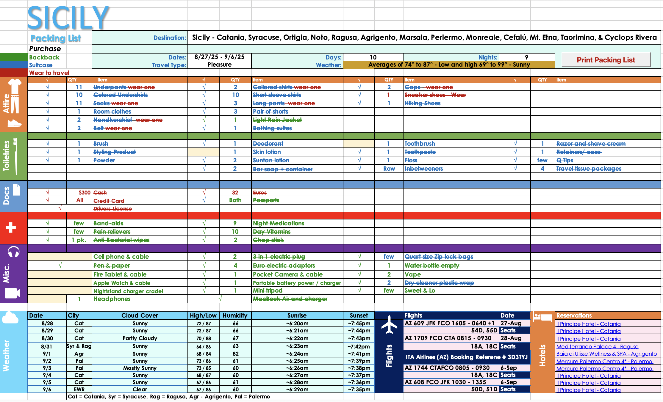 Whether you are traveling for a few days or a few weeks a packing list is essential to making sure you are bringing everything you need for your trip. As he was unable to make it the September meeting, Mark will be doing a deep dive into his Ultimate Packing List in our October meeting. This Excel based file can be modified to handle any trip you take.